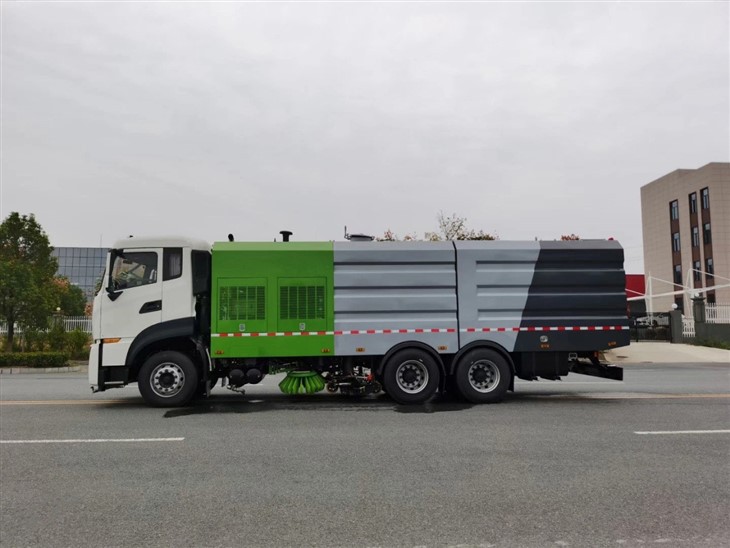 Designed for urban environments, the vehicle finds extensive use in the daily cleaning, washing, and sweeping of main roads and viaducts. Its features include 2 mid-mounted brushes, a broad mid-mounted suction cup, and a V-shaped high-pressure flushing frame equipped with anti-collision and obstacle-avoidance functions. Together, these components create a sweeping and flushing belt exceeding 3.5m in width.