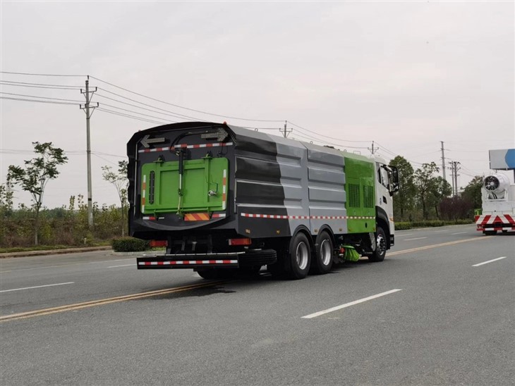 2. Versatile Waste Management: With a generous 9 cubic meters garbage bin capacity, this sweeper truck ensures effective waste management in urban environments. The ample storage space facilitates longer operation periods between waste disposal, contributing to increased efficiency in waste collection and disposal processes.