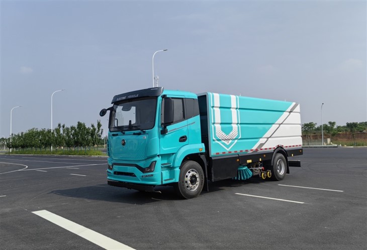 1. Sweeping: The upper motor drives the hydraulic oil pump and fan. The hydraulic oil pump controls the extension, lifting, and rotation of the left and right sweeping discs. The sweeping discs push the litter from both sides to the bottom of the washing and sweeping vehicle and in front of the suction nozzle. The fan creates a high-speed airflow in the duct formed by the garbage bin, suction tube, and suction nozzle. With the airflow, the garbage is sucked into the nozzle and enters the garbage bin. The chassis engine propels the washing and sweeping vehicle forward, continuously sweeping the litter in front of the nozzle into the suction nozzle and then into the garbage bin, achieving road cleaning.
