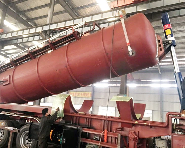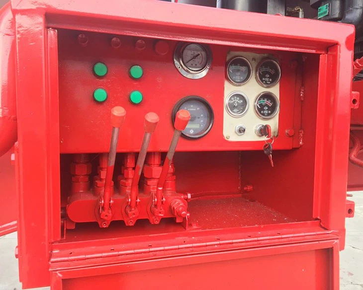 1. The hydraulic system of the cylindrical vacuum tank allows it to be lifted to a 40-45 degree angle. Additionally, the rear door can be opened and closed using hydraulic power.