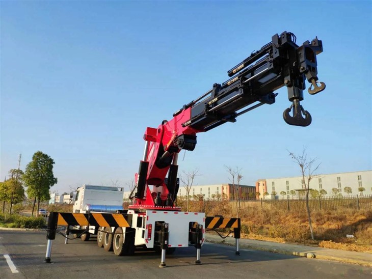 The term “knuckle boom” refers to the articulated arm resembling a human knuckle joint, allowing the crane to fold and unfold with precision. The 200t knuckle boom truck mounted crane represents a remarkable engineering feat, combining substantial lifting capacity with unparalleled maneuverability. With a lifting capacity of 200 metric tons, this crane is a heavyweight champion in its category, suitable for tasks ranging from the construction of high-rise buildings to port operations.