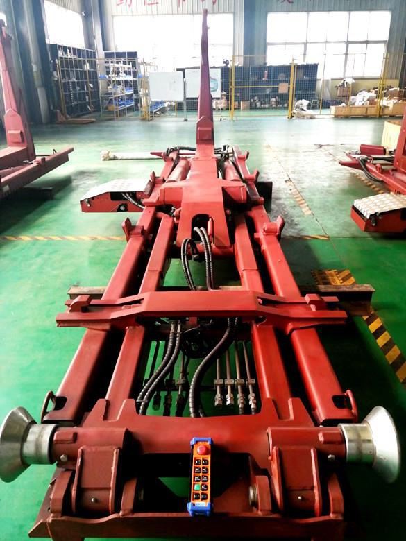 - Equipped with a limit switch valve to prevent the container from rising when it is not horizontal, the hook boom is telescopic and is not fully retracted; the locking alarm of the container installed