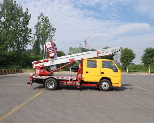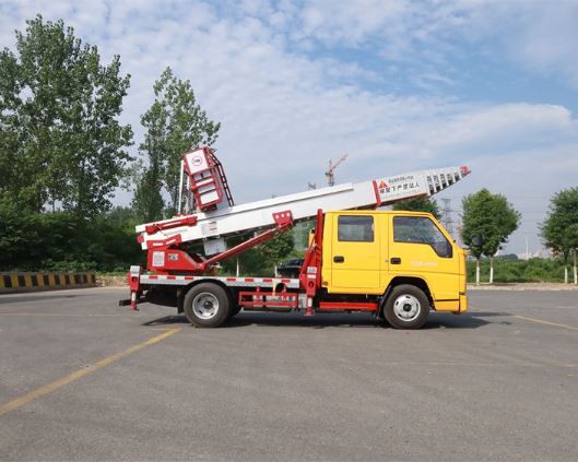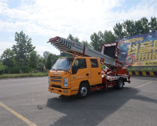 The ladder boom is extended to 32 meters, and the automatic limit pressure relief sound alarm prompts