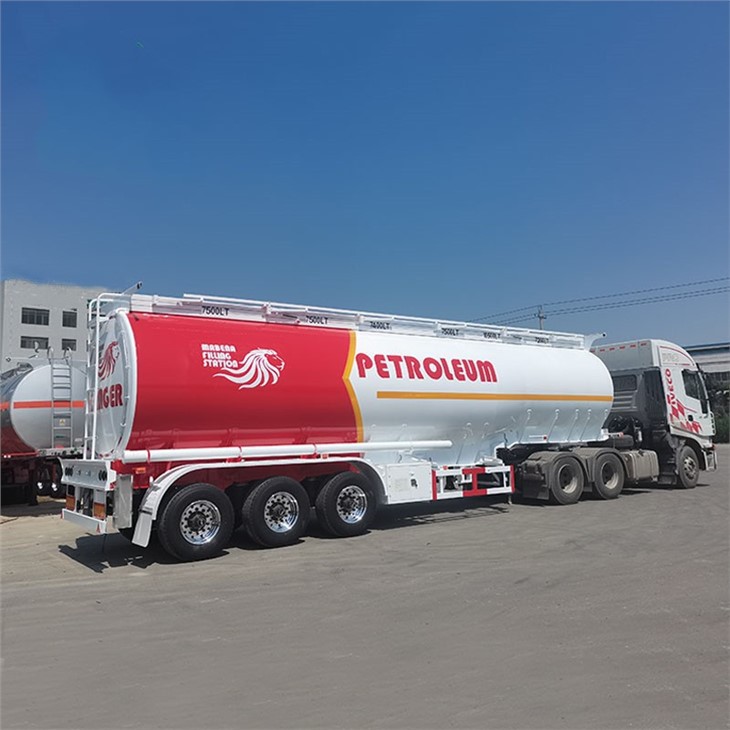 The 33000 Liters Fuel Transport Trailer is a vehicle composed of a tractor connected to a semi-trailer. The trailer has a capacity of 33000 liters, with five compartments, and is made of mild steel Q235. The fuel trailer generally has two structures, one is the gooseneck type, and the other is the straight-through type.