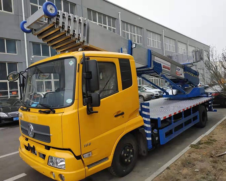 The ladder lift truck is a combination of a truck and ladder lift equipment, designed to transport cargo from the lower level to high floors, primarily on construction sites. Our ladder lift truck is 45m high and mounted on a Dongfeng truck chassis. It is constructed using high-strength special aluminum alloy, ensuring it can support weights of up to 400kg. This feature allows the ladder lift truck to transfer heavy loads quickly, reducing the need for manual labor and saving time. Additionally, the ladder lift truck‘s compact design enables it to access narrow alleys, making it possible to transport cargo anywhere, anytime. Overall, the CSCTRUCK ladder lift truck is a practical and efficient solution for transporting heavy loads in a variety of settings, including construction sites.