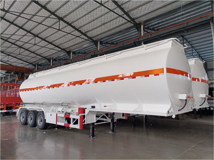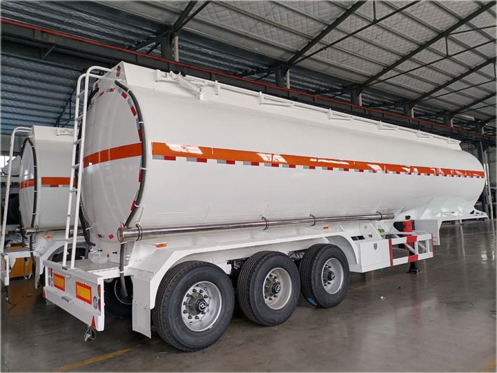 The upper part of the 48000 Liters Oil Trailer is equipped with a protective frame, a manhole cover, and an overflow pipe. The lower part of the tank is welded with tube bearings and bottom seat holes. The wall thickness of the inner tank should be greater than 3.2mm, and the surface of the inner tank should be sandblasted, and then coated (or sprayed) with zinc.