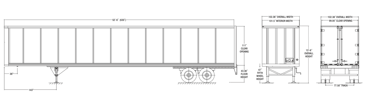 The CSCTRUCK 53′ Cargo Dry Van Box is built using robust composite plate sidewall and steel logistic slotted stiffeners, which makes the sidewall material lightweight without compromising its strength.