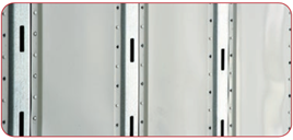 Side stiffeners Logistics in Galvanized steel, anti-snag, on 24″ center.