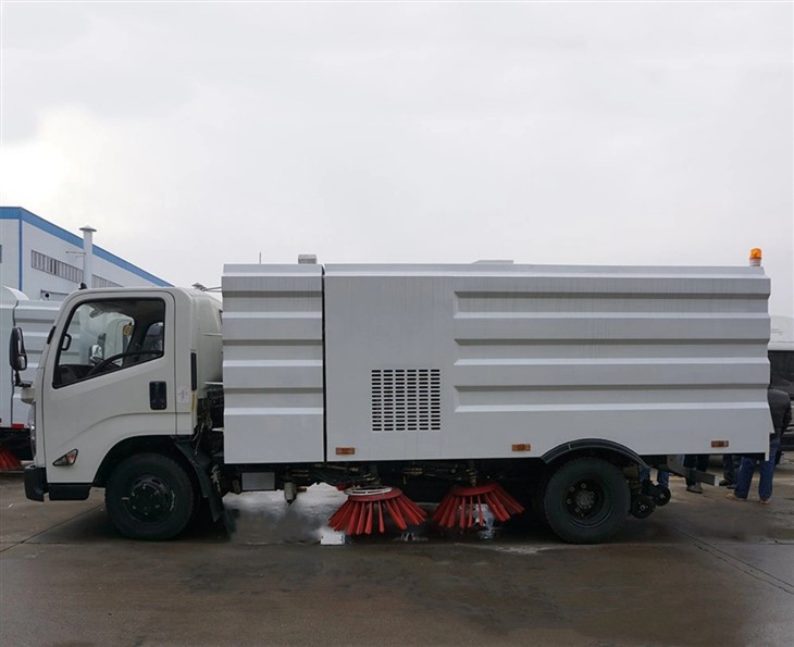Specially equipped with sweeping brushes and a suction dish, the road sweeper collects and transports particles effectively from the ground. The hydraulic system ensures the smooth functioning of the sweeping and suction mechanisms, enhancing the overall performance of the vehicle.