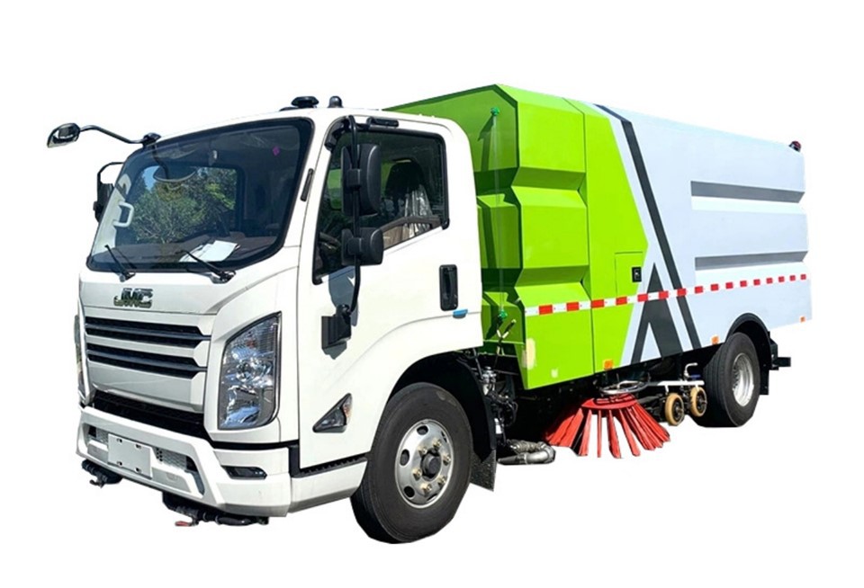 The JMC 6 wheelers 8 CBM street scrubber, manufactured by CSCTRUCK, stands as a testament to cutting-edge technology and innovation in the realm of urban sanitation and road maintenance. This robust and efficient vehicle is equipped with a 4CBM garbage tanker, and a 4CBM water tanker, and operates on a 4×2 drive type, ensuring versatility and adaptability to various cleaning tasks.
