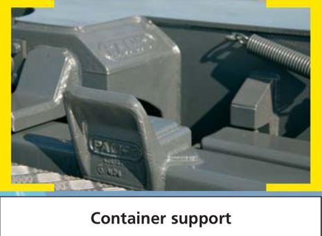 ☆ Container: The container is consisting with box body, roller, rear door and locking mechanism it is the main body for loading cargo and goods. The box material with 16Mn alloy steel, inside structure as a trumpet – shaped. The roller installed under the container box, support the box sliding on the ground, the box is fully closed structure, rear door frame imbedding with gasket and after water test avoid water leakage. The rear lockable door would choose optional hydraulic control which could operated in the cabin.