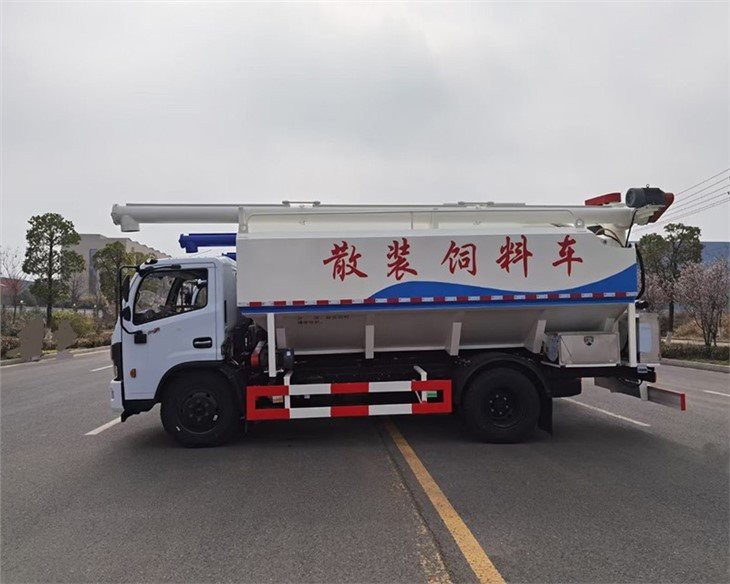 24CBM bulk feed trucks serve primarily to transport finished bulk feed products or raw feed materials from feed mills to livestock farms, poultry farms, and other feed processing facilities. Additionally, they can transport certain non-corrosive powders and granular materials, such as those found in pharmaceutical factories or grain depots. These bulk feed trucks feature a feed tank mounted on the chassis, equipped with a feed inlet at the top. A screw conveying unloading pipe, commonly referred to as an unloading auger, is positioned atop the tank. This pipe can rotate and lift freely, with an elevation angle reaching up to 60 degrees.