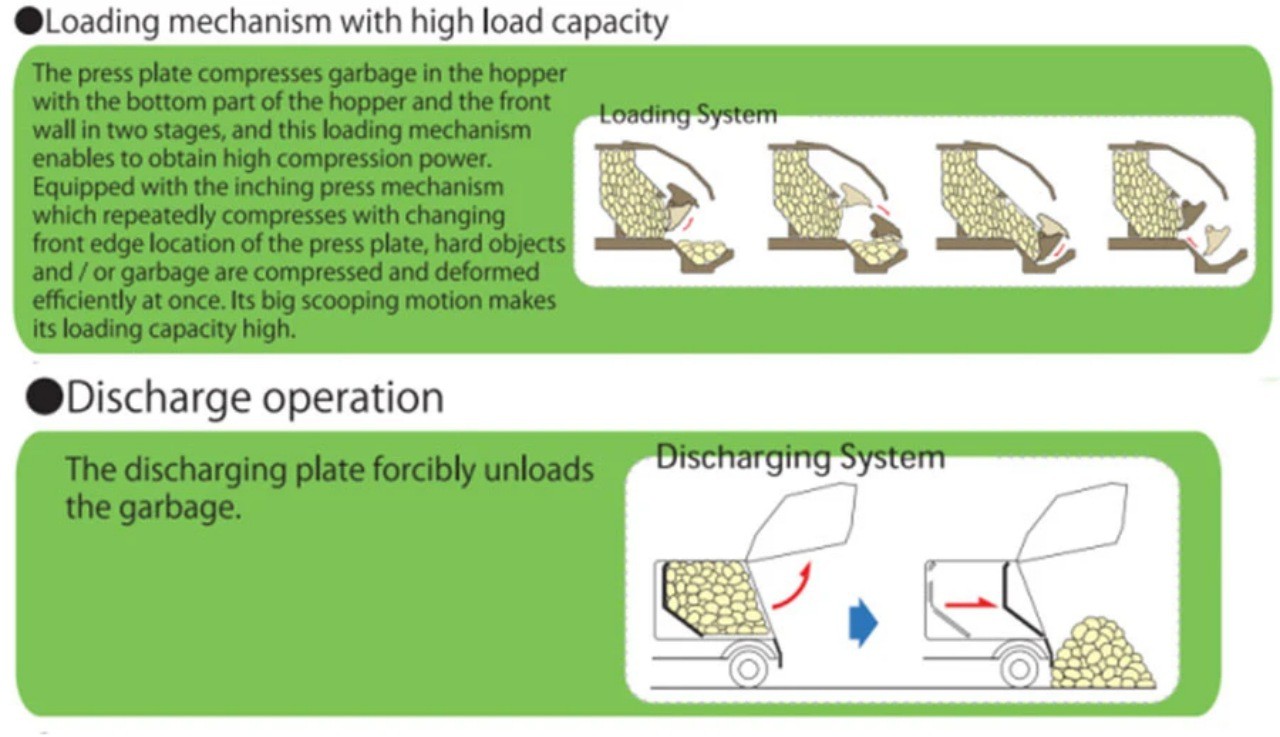 Ease of use is a priority with this garbage compactor truck. Its rear loader design allows for quick and efficient collection, minimizing the time spent at each pickup location. The user-friendly controls and ergonomic cabin ensure that the operators can work comfortably and efficiently throughout their shifts. Moreover, the vehicle’s robust build guarantees longevity and durability, even in the harshest of conditions.