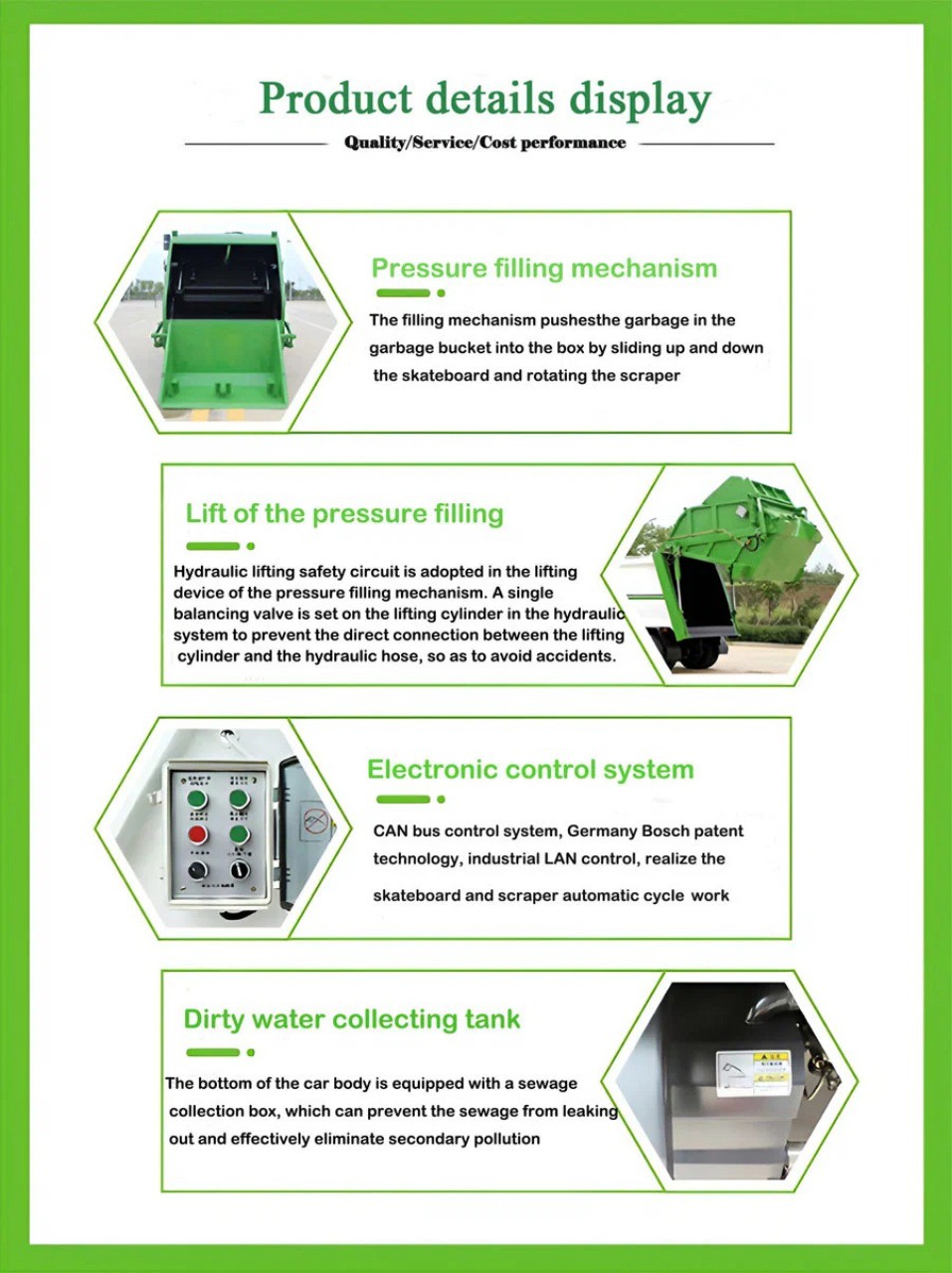 The Dongfeng 14CBM rear loader garbage compactor truck is a boon for the environment. Its compaction system not only reduces the need for multiple trips to landfills but also helps in minimizing landfill space. This translates into reduced soil and groundwater contamination, lowering the overall environmental impact of waste disposal. Furthermore, the truck’s engine complies with strict emission standards, making it a cleaner and greener alternative for waste collection.