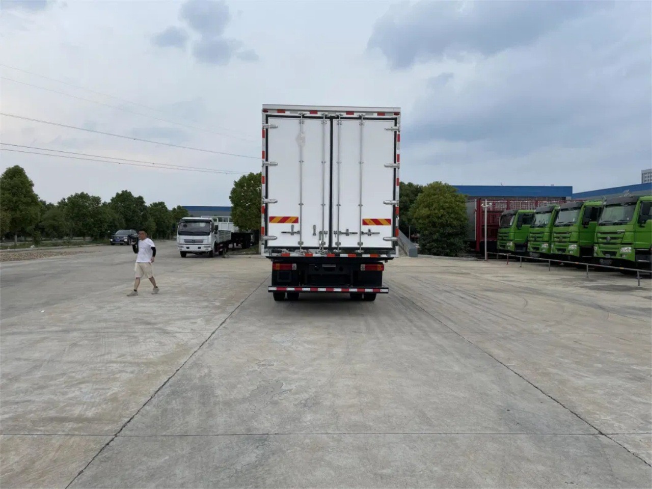 The heart of the Dongfeng 4×2 10-ton food delivery van is its state-of-the-art refrigeration system. Equipped with cutting-edge technology, this refrigerated truck boasts a powerful cooling unit that maintains a consistent temperature, preserving the freshness of the cargo within. Whether it’s transporting dairy products, fresh produce, or frozen meats, this vehicle is up to the task, of ensuring that the temperature-sensitive goods remain in their prime.