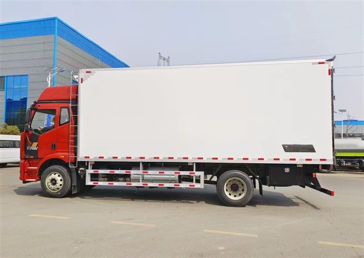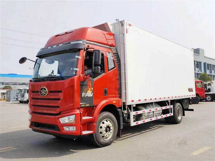 The J6L Elite Edition 6.8-meter refrigerated delivery van, equipped with a powerful 260-horsepower 6-cylinder engine from FAW and an 8-speed gearbox, offers both high and low-gear options with a synchronized transmission. It features 275mm vacuum tires for enhanced performance. The interior dimensions of the cargo box are 6,800mm in length, 2,420mm in width, and 2,500mm in height, providing a spacious 48-cubic-meter capacity for transporting goods. The truck is fitted with a Kelly 990 refrigeration unit, capable of maintaining temperatures as low as -18 degrees Celsius. Additionally, it offers the flexibility to be outfitted with refrigeration units from other renowned brands.