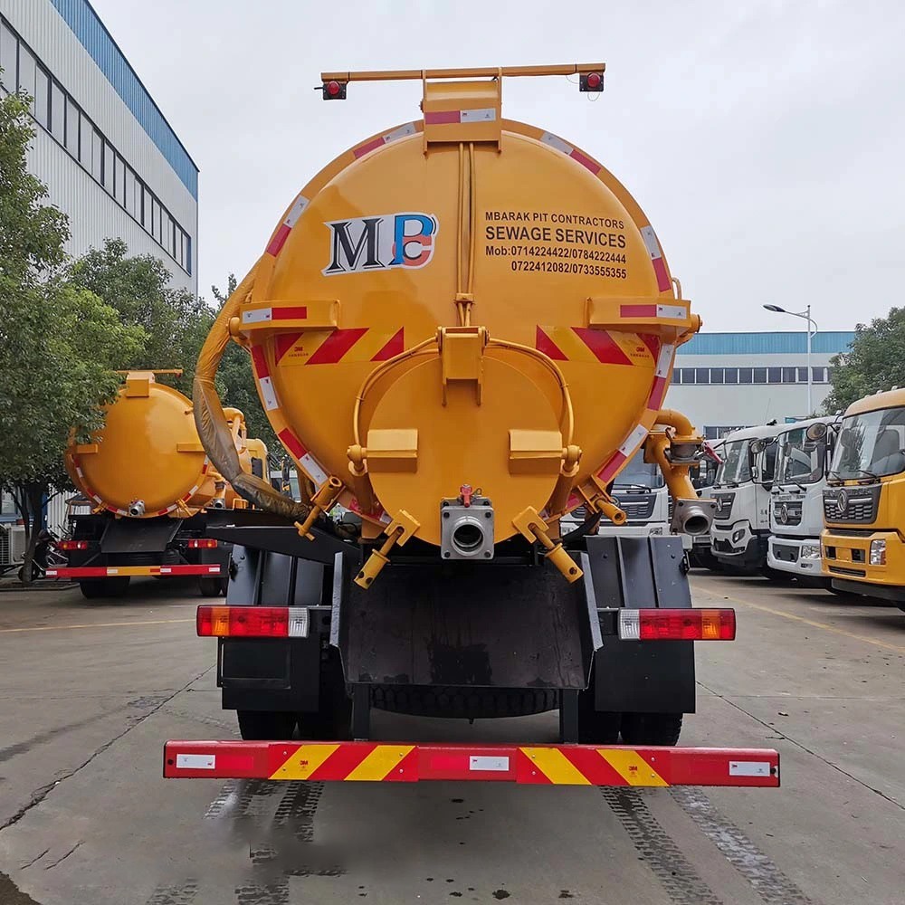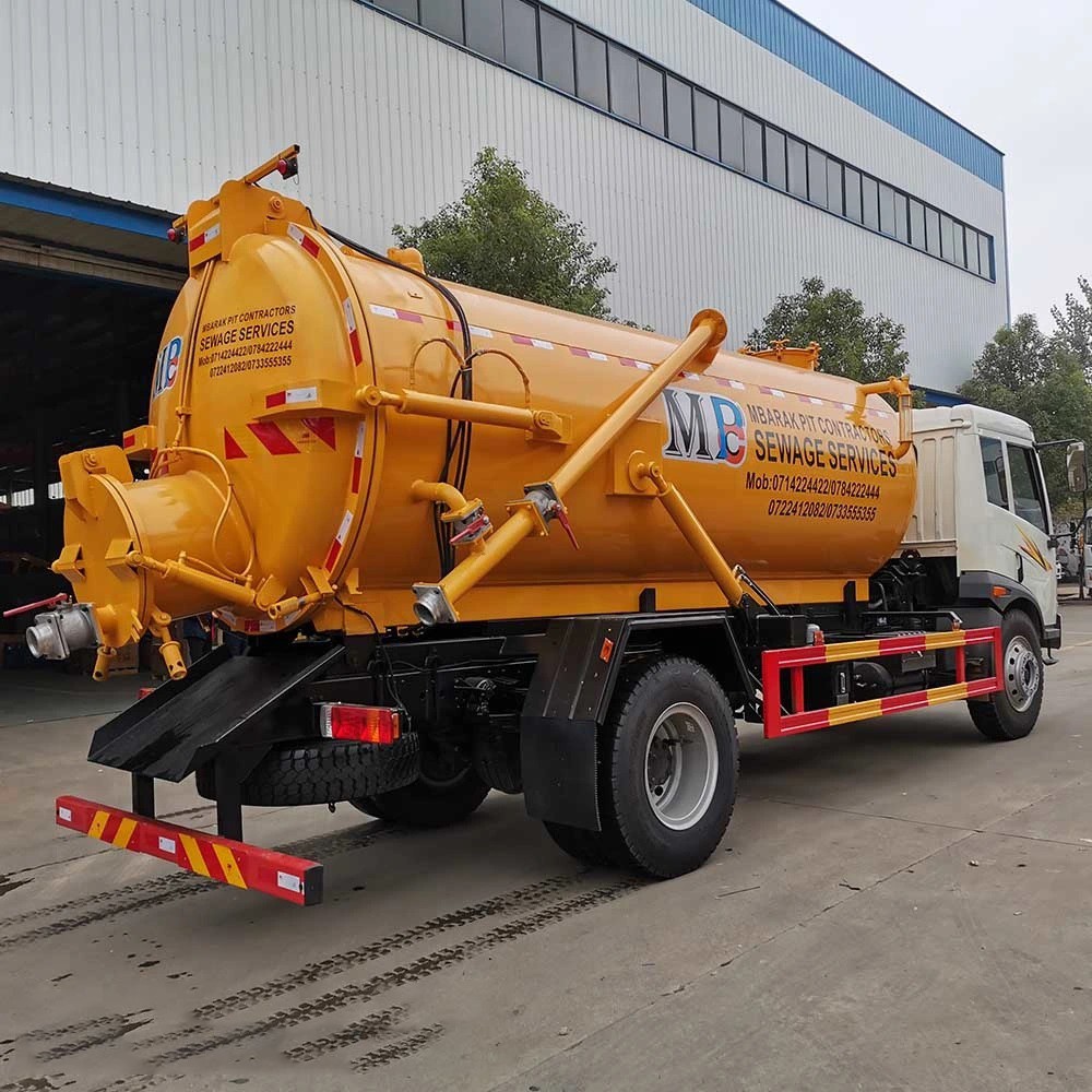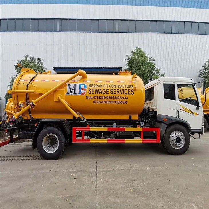 The FAW 12,000L Vacuum Sewer Truck is designed to collect, by suction, and transport sewage and sludge. The vacuum Sewage Tank System Body mounted based on the FAW truck chassis with a top vacuum pump consists of a subframe connected to the truck chassis, a cylindrical tank, a hydraulically opening full-diameter tailgate, and the vacuum system powered by the PTO. The Sewer Vacuum Tankers Mounted on the truck are intended for vacuum cleaning of cesspools and transportation of fecal liquids to the disposal area. The upper part of the tank structure is designed to suck various liquid wastes, mud, and dirt from the earth or septic tank; the Upper part of the tank structure is stable /resistant to frequent cleansing and disinfection.