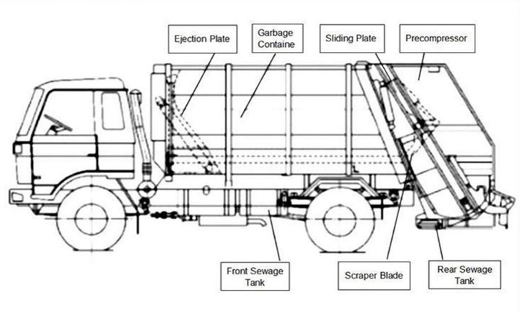 Within the garbage compactor body, a series of essential components work seamlessly together to manage waste effectively. The heart of the system is the sealed tank, providing a contained environment to handle the diverse types of waste efficiently and hygienically. This ensures that no leakage or spillage occurs during the collection and transportation process, promoting a clean and eco-friendly operation.