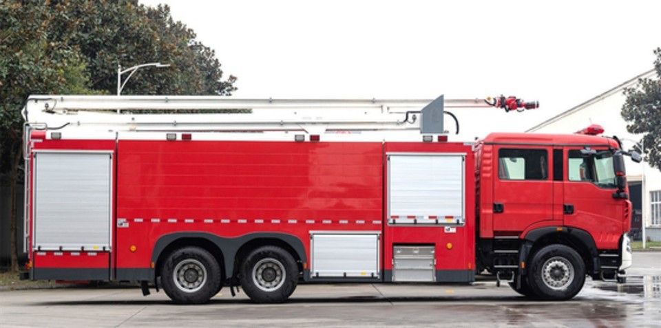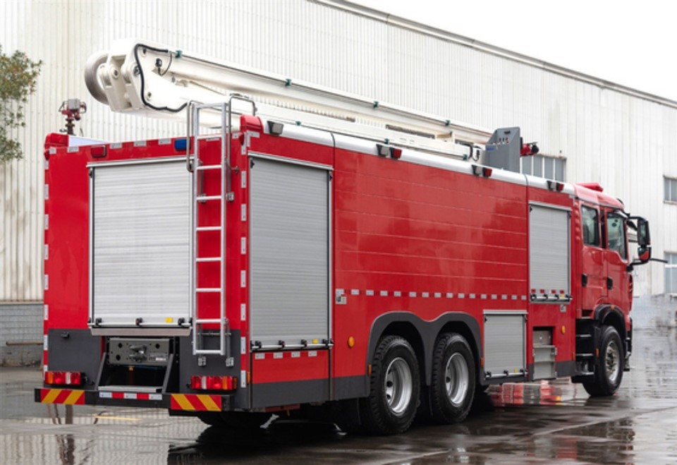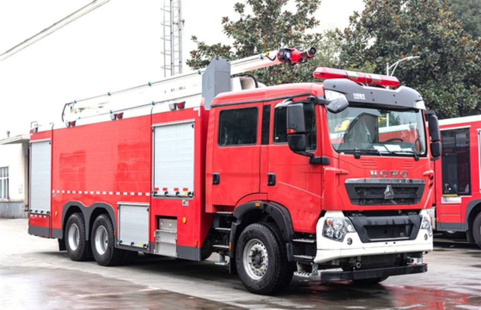 The HOWO 20M water tower fire apparatus, produced by CSCTRUCK, is a high-performance fire-fighting vehicle designed for rapid response and efficient fire suppression in various environments. Built on the Sinotruk Sitrak chassis with a 6×4 drive type, the vehicle is powered by a Euro 6-compliant engine, ensuring both environmental responsibility and high power output. It has a maximum driving speed of 85km/h, allowing for swift movement across diverse terrains. The fire apparatus has a full loading weight of approximately 42,000 kg, which supports its heavy-duty construction and water/foam delivery capacity.
