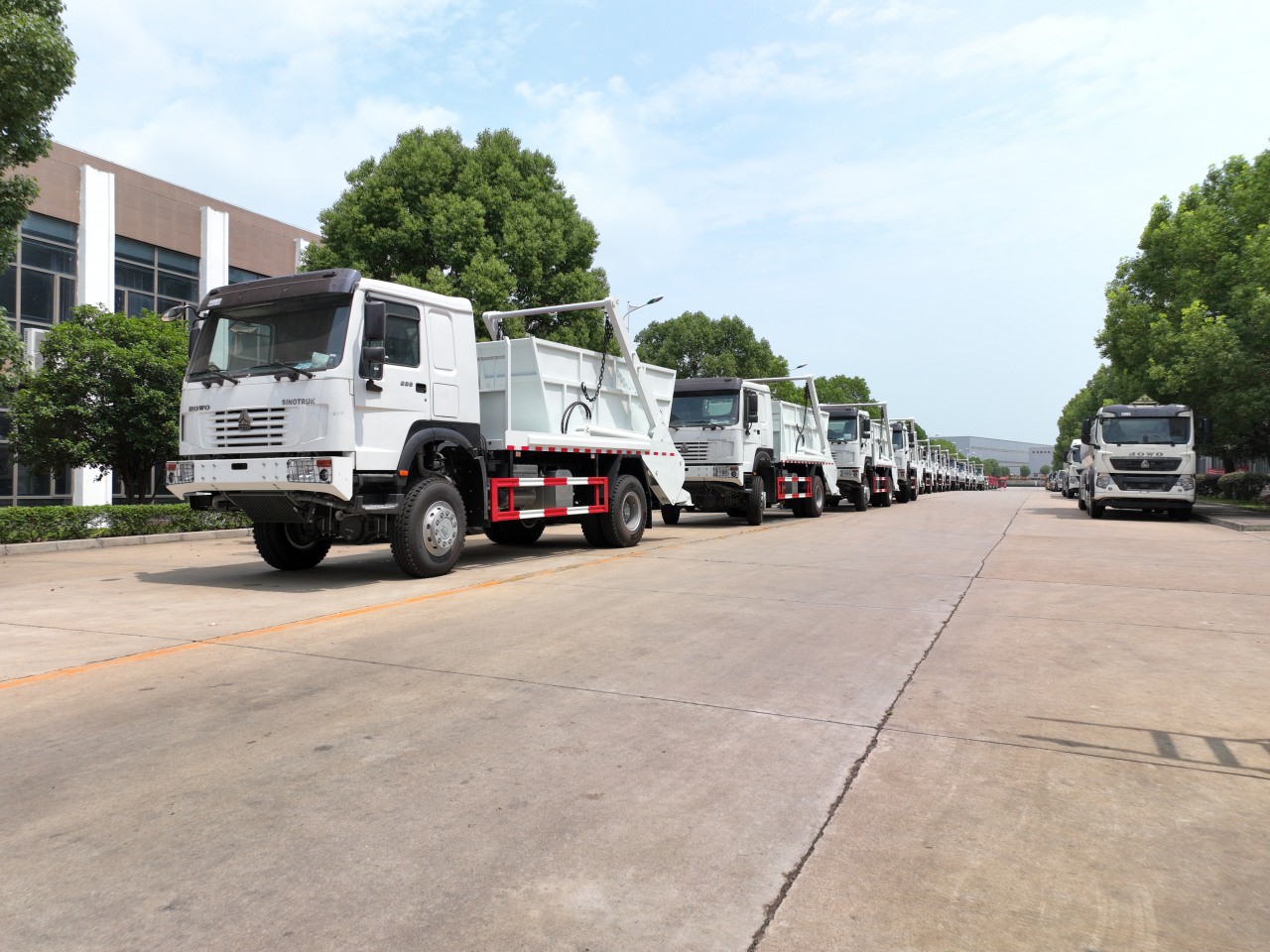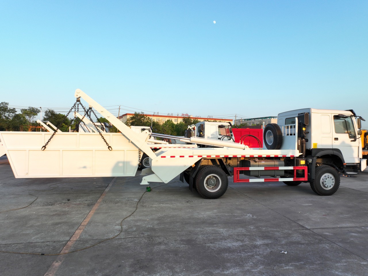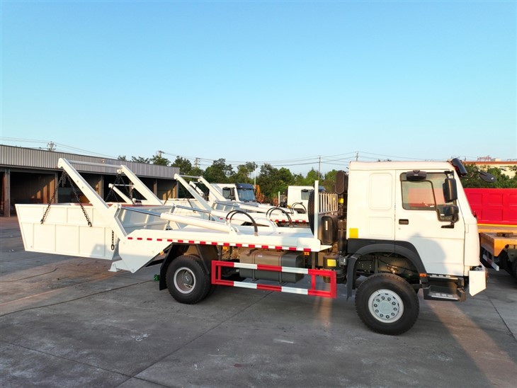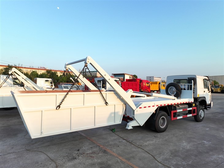 One of the key features of the HOWO Skip Bin Truck is its compatibility with various skip containers, which can be tailored to specific requirements. These containers come in a multitude of styles, each uniquely suited for its intended use. The mobility of these containers is facilitated by the agile boom arms integrated into the skip truck’s design.