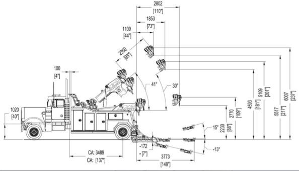 – Retracted capacity (at 41°) 30 ton (66,100 lbs)