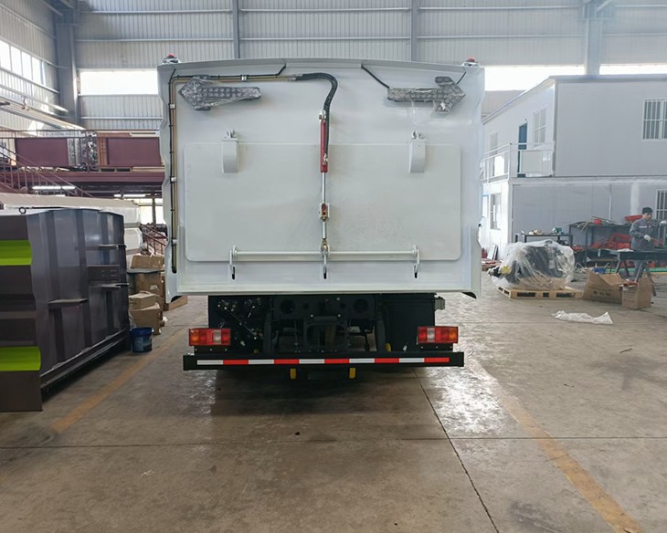 The Sweeper Body Kit is constructed with high-quality, wear-resistant stainless-steel plates welded tanks, along with an auxiliary engine, air blower, sweeping system, suction system, water sprinkling system, hydraulic system, and electric system. Additionally, there is a front spraying bar and hose reel installed that can be used for dust suppression in roadside and narrow lanes, as well as for washing the sweeper body.