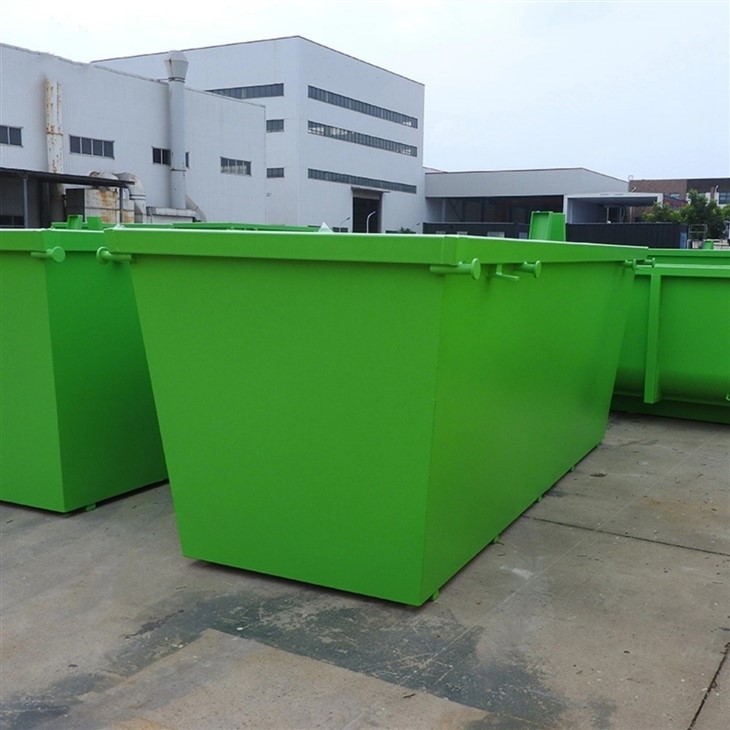 To further enhance durability, 8mm or 10mm flat bars are welded on the sides of the skip bin, adding reinforcement and preventing deformation. The inclusion of cross members beneath the floor adds additional structural support, ensuring the bin maintains its shape and functionality over extended periods of use.