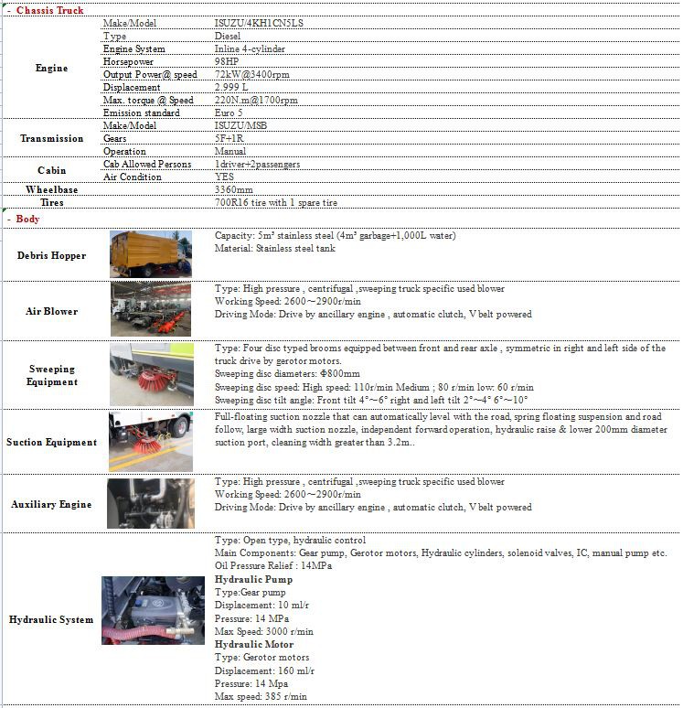 5. Powerful Performance: Despite its eco-friendly design, the truck doesn’t compromise on performance, delivering a robust 98HP engine power, ensuring sufficient power to tackle cleaning tasks effectively. The air blower’s working speed of 2600-2900r/min further enhances efficiency, facilitating swift and thorough cleaning operations.