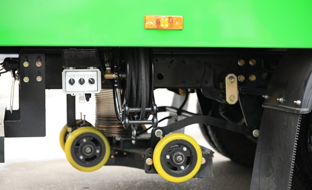 Fours brushes are installed between the front and rear axle, driven by gerotor motor. Left and right brushes are controlled to lift up and down separately. The rear brushes and suction nozzle are gang controlled for up and down. |