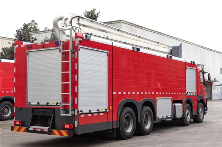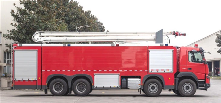 The Volvo 20M water tower fire fighting truck, produced by CSCTRUCK, is a specialized vehicle designed for effective firefighting in challenging environments, especially in high-rise structures or large industrial sites. It features a 20-meter maximum working height for its water tower, making it highly versatile for tackling fires at elevated positions. The truck is built on a Volvo 8×4 chassis and adheres to the Euro 6 emission standard, ensuring compliance with the latest environmental regulations while maintaining optimal engine performance.